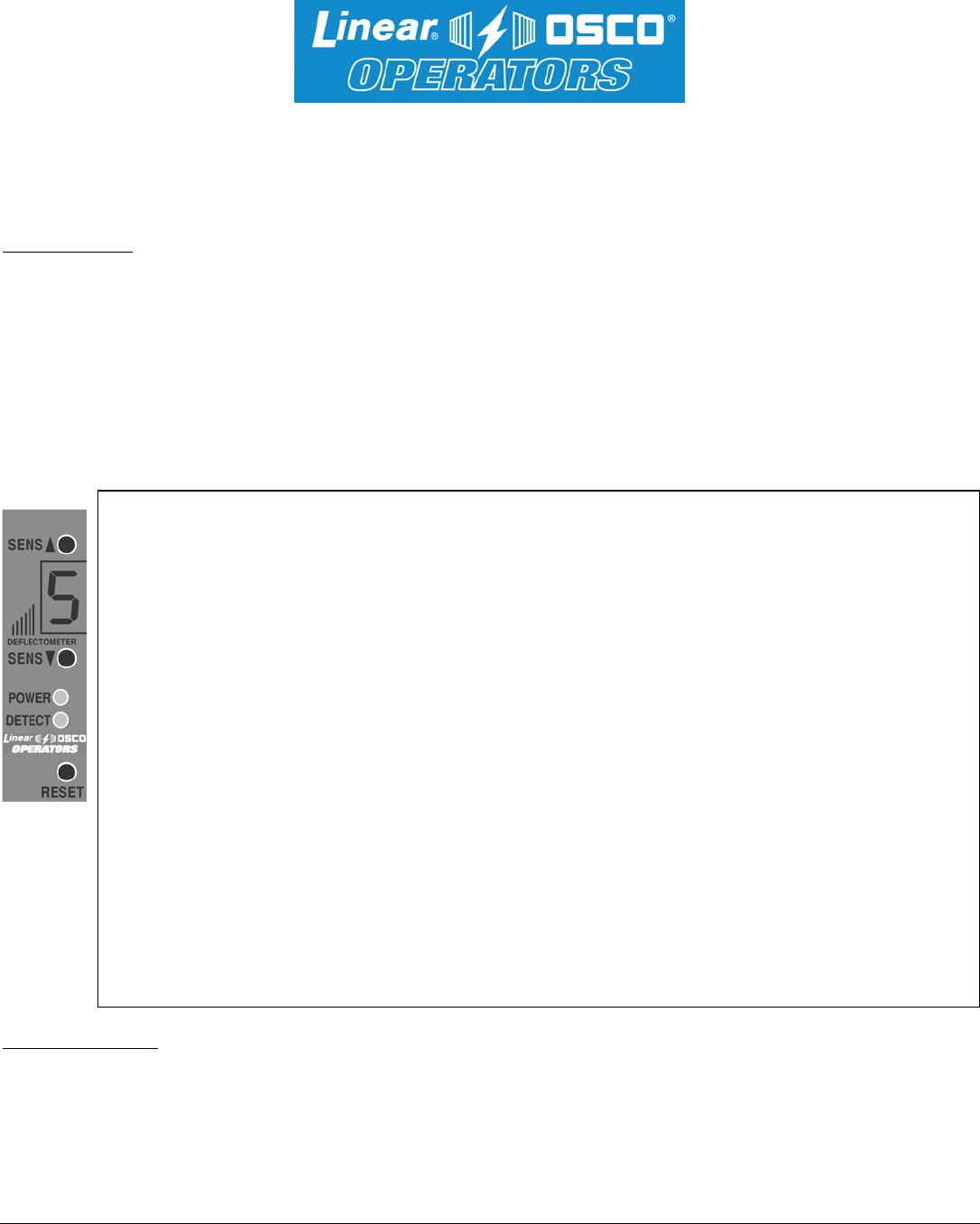 The Linear / Osco Model 2500-2346-LP operates on 12 VDC, 24 VDC, and 24 VAC, and is designed for low power requirements. The detector is